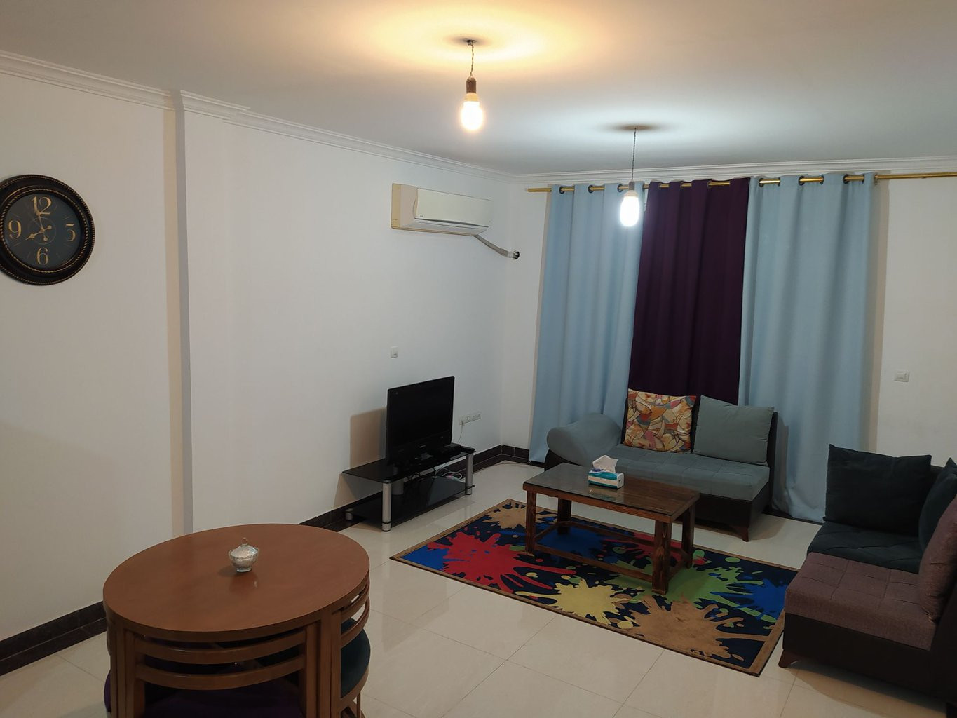پذیرایی و اتاقهای آپارتمان یک خوابه دنج 4 کیش