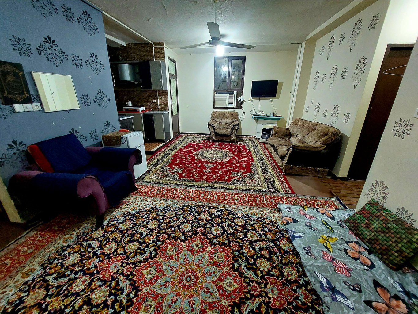 پذیرایی و اتاقهای آپارتمان یک خوابه سکوت 2 شوشتر