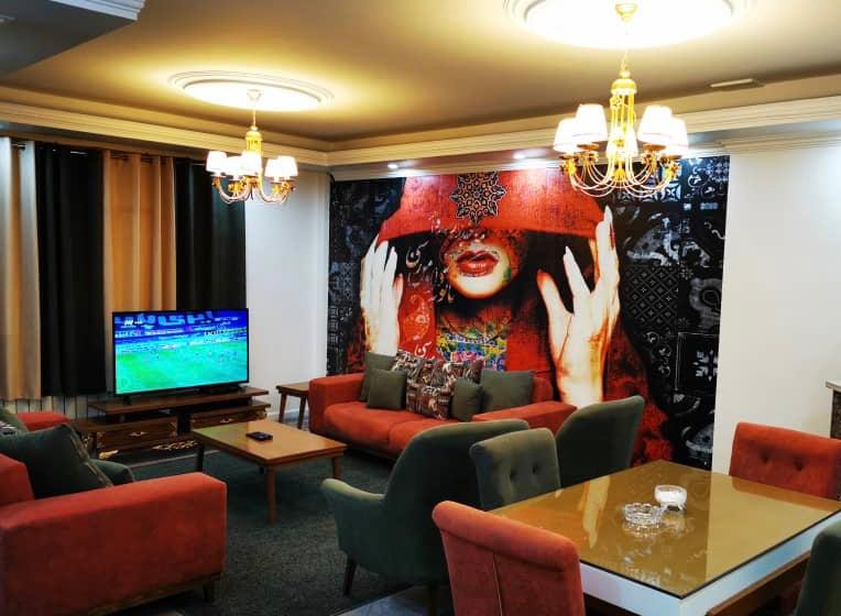 پذیرایی و اتاقهای آپارتمان دو خواب نوساز سعادت آباد تهران