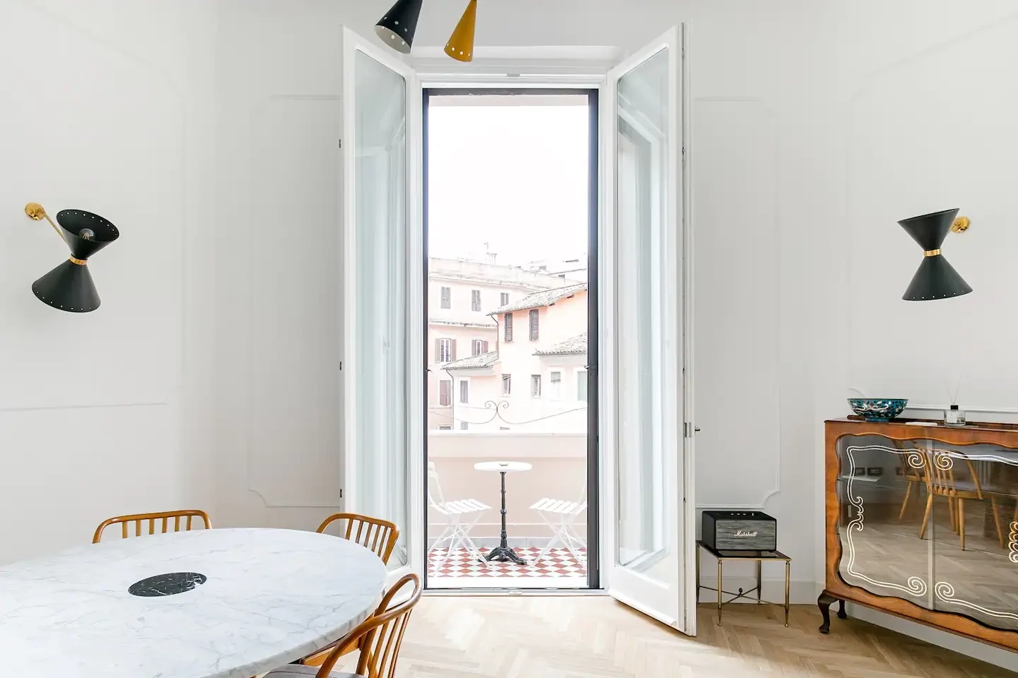 ❇️ در امتداد یکی از خیابان های زیبای رم روی بالکن کاشیکاری شده قدم بزنید تا افرادی را که از زیر آن رد میشوند تماشا کنید. این آپارتمان دارای طراحی شیک و مبلمان مدرن و قدیمی، وسایل نورپردازی چشم نواز و حمام مرمری است و تمام امکانات یک آپارتمان لوکس و شیک را در اختیار مهمانان گرامی قرار می دهد.