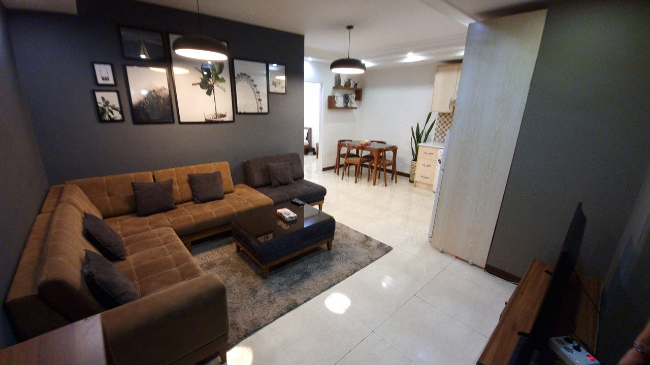 پذیرایی و اتاقهای آپارتمان دوخوابه گاندی