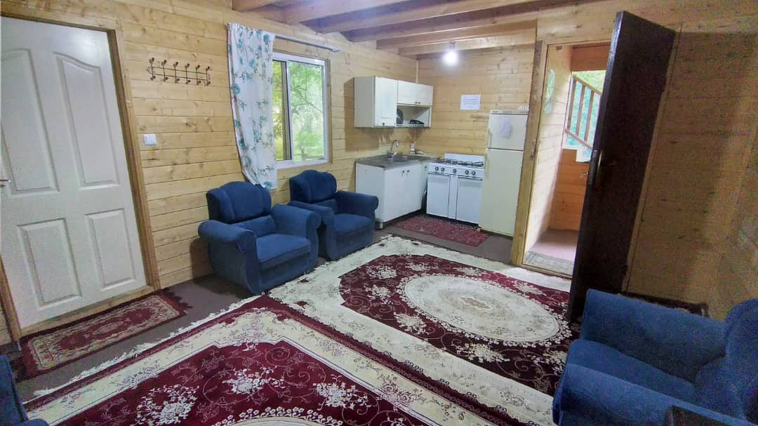 پذیرایی و اتاقهای کلبه چوبی دوبلکس سامان ماسال