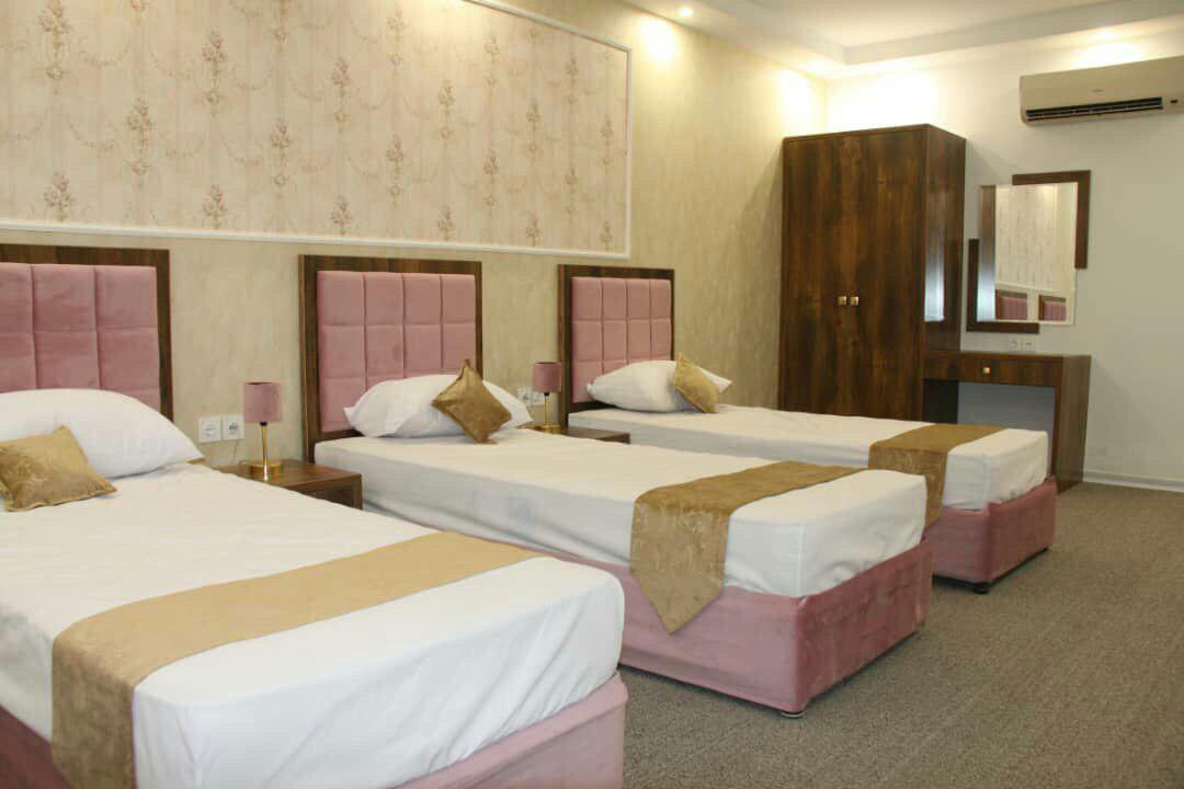 اگر در سفر به اهواز دو نفر هستید و میخواهید اقامتی راحت را در فضایی وسیعتر از اتاقهای معمولی هتل تجربه کنید، پیشنهاد میکنیم که سوئیت یک خوابه سه تخته برای دو نفر هتل تختی را رزرو کنید. با رزرو این سوئیت، ویو خوبی رو به خیابانهای اطراف هتل خواهید داشت. این سوئیت 60 متری دارای سه عدد تخت تک نفره است.