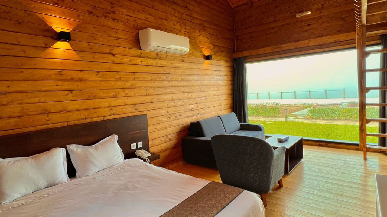 • اقامت در ویلاهای چوبی کنار دریا با نمای طبیعی