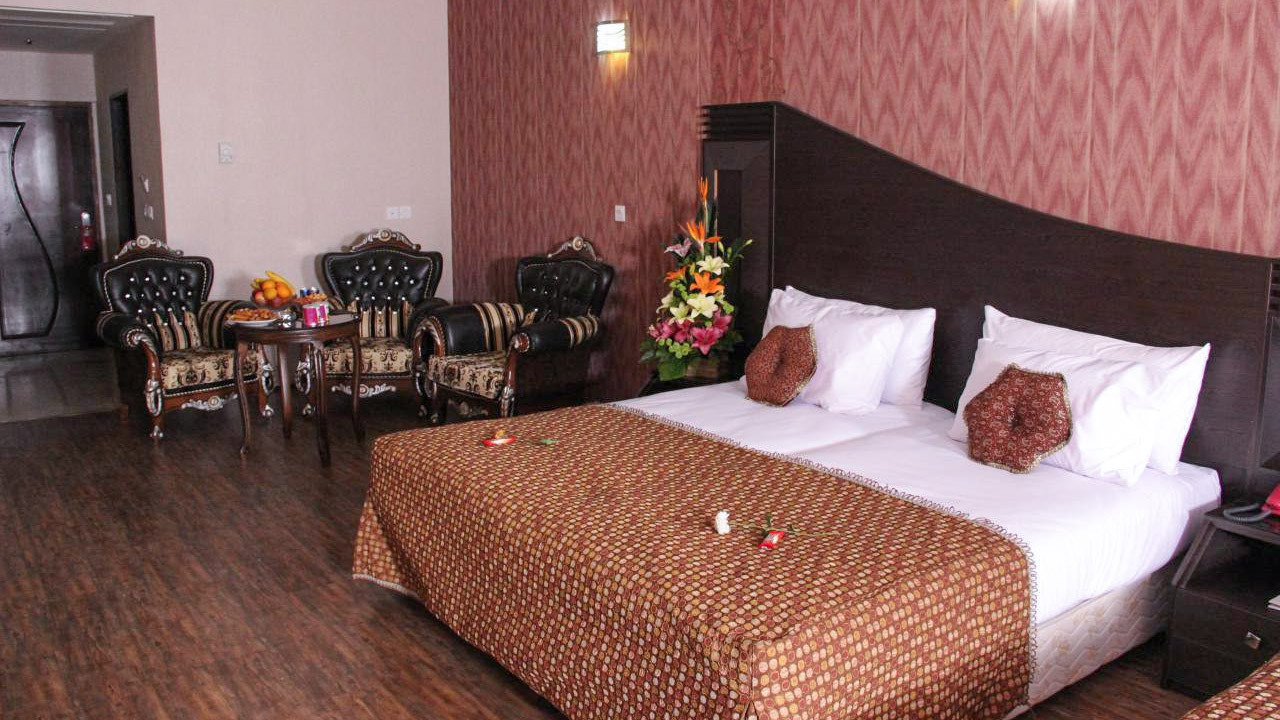 با رزرو این اتاق، چشم اندازی زیبا رو به جنوب همدان و نمای کوه و باغهای اطراف هتل خواهید داشت. متراژ این اتاق 20 متر است و ظرفیت یک نفر اضافه را دارد. این واحد اقامتی دو مدل دارد، در یک نوع از آنها سه تخت تک نفره و در نوع دیگر یک تخت دو نفره و یک تخت تک نفره موجود است.