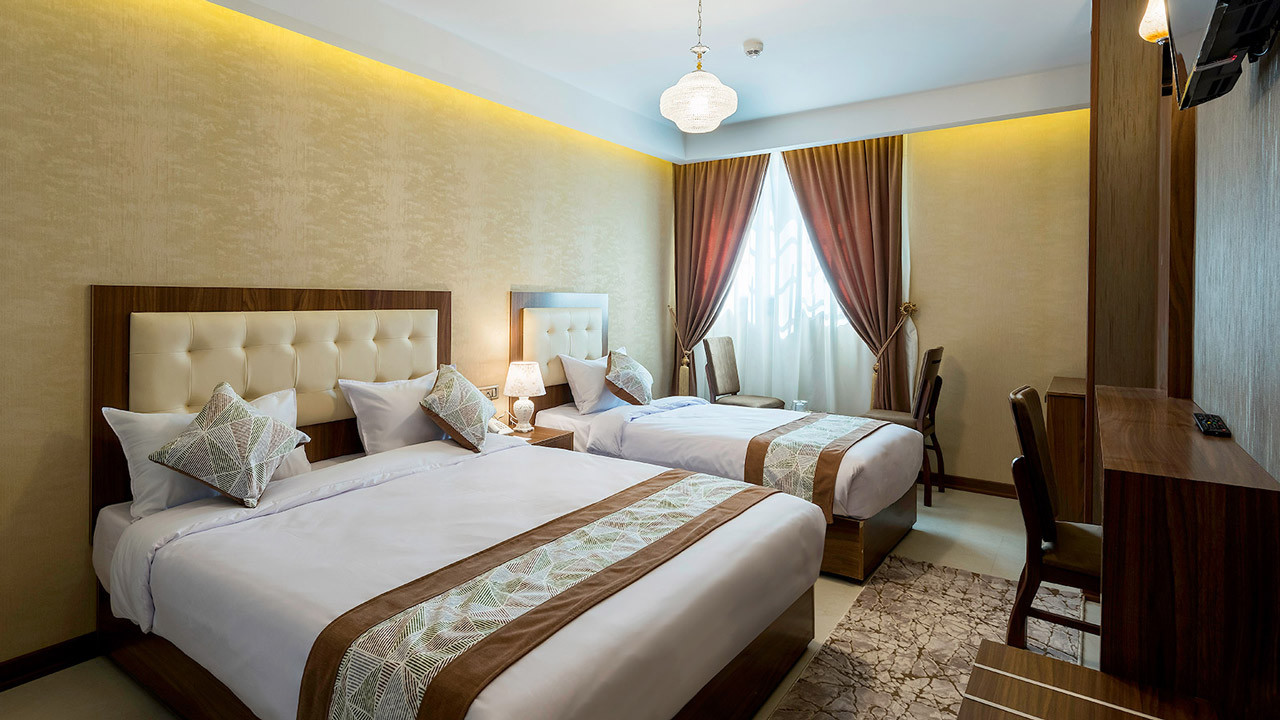 اگر همراه یکی از اعضای خانواده یا یکی از دوستانتان به شهر اصفهان سفر کردهاید و به دنبال اقامتگاهی راحت و مناسب هستید، اتاق دو تخته توئین بهترین انتخاب برای شما است. این اتاقها برای دو نفر مناسب هستند و رزرو این اتاقها هم مانند دیگر اتاقها با صبحانه است.