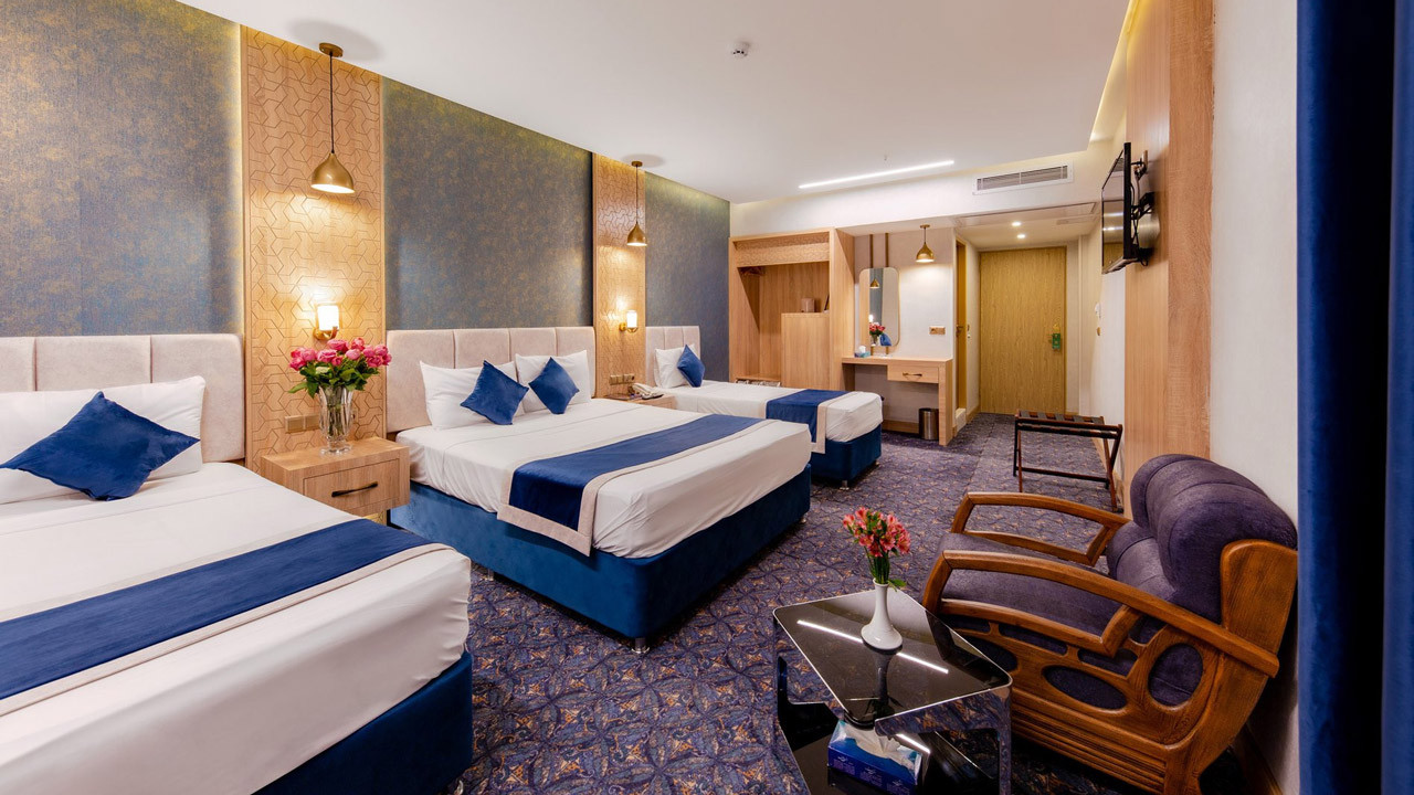 اگر تصمیم دارید با سه نفر از اعضای خانواده خود به اصفهان زیبا سفر کنید و اقامتی به یادماندنی را در این شهر تجربه کنید، پیشنهاد می کنیم که اتاق سه تخته هتل ستاره را رزرو کنید. با رزرو این اتاق 17 متری، چشم انداز خوبی رو به محوطه هتل و خیابان های اطراف آن خواهید داشت. این اتاق دارای یک عدد تخت تک نفره و یک عدد تخت دو نفره است. در این واحد یخچال وجود دارد و می توانید غذاها و خوراکی های خود را در آن تازه نگه دارید.