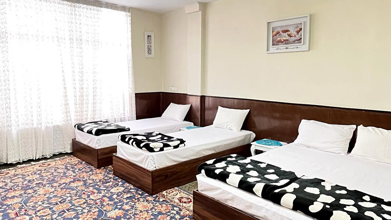 این اتاق دارای یک تخت دبل و دو تخت تویین است. این اتاق سوئیت دارای نشیمن مبله و فضای اتاق خواب جداگانه است. شما میتوانید جای نشستن و جای خواب خود را به سادگی از هم جدا کنید. دو دست رختخواب سنتی هم داخل کمدها قرار دارد و برای نفرات اضافه هیچ مشکلی وجود نخواهد داشت. این واحد 40 متری دارای سرویس بهداشتی ایرانی و فرنگی و حمام با لوازم بهداشتی شخصی به تعداد نفرات است.