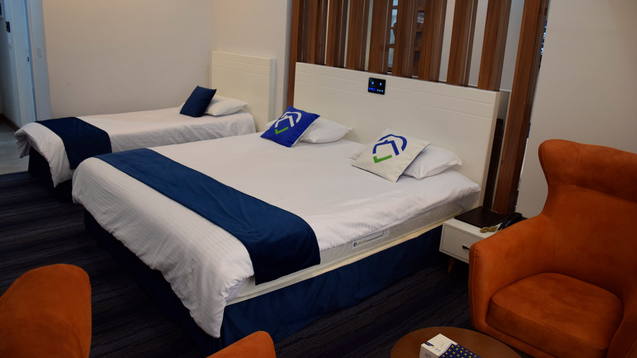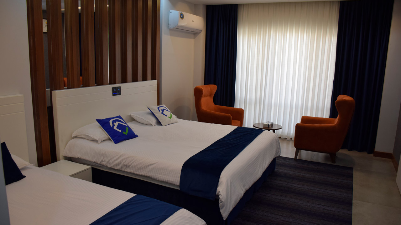 از آنجا که اتاق های سه تخته لوکس هتل آریان کیش نوساز هستند، شرایط و طراحی بهتری را در اختیار شما قرار می دهند. در این اتاق های سه نفره نیز یک عدد تخت دو نفره و یک عدد تخت یک نفره وجود دارد که شرایط مناسب برای خواب و استراحت شما را فراهم می کند. همچنین در این اتاق امکان افزودن ظرفیت اضافه برای یک نفر وجود دارد. بنابراین با جمعی 4 نفره نیز می توانید در این اتاق اقامت خوبی را تجربه کنید.