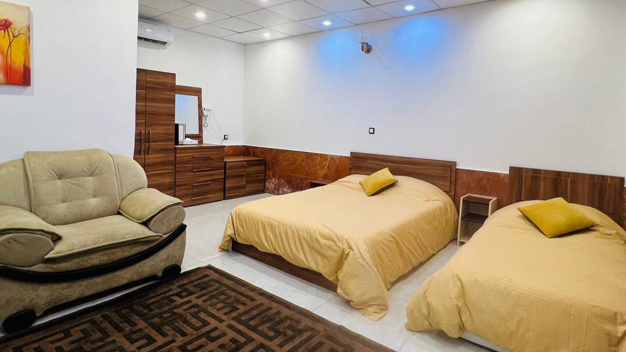 اتاق برای سفرهای دوستانه و یا خانواده مناسب است و امکان پذیرش نفر اضافه را ندارد.این اتاق با داشتن یک تخت دبل و یک تخت سینگل، با مبلمان شیک و زیبا آماده پذیرایی از مهمانان می باشد. قالی، حمام، حوله حمام، دمپایی مخصوص حمام، سرویس بهداشتی فرنگی، سرویس بهداشتی ایرانی، دستمال، صابون، شامپو، خمیر دندان، مسواک، یخچال، صبحانه، روم سرویس، آباژور، کمد لباس، رخت آویز، تلویزیون، تلفن، شبکه پخش فیلم، سیستم اطفاءحریق، سیستم گرمایشی و سرمایشی اسپلیت، مینی بار با هزینه، سیستم تهویه مطبوع، امکان شارژ وسایل الکترونیکی، دمپایی مخصوص اتاق و سیستم اعلام حریق از دیگر امکانات موجود در اتاق است.