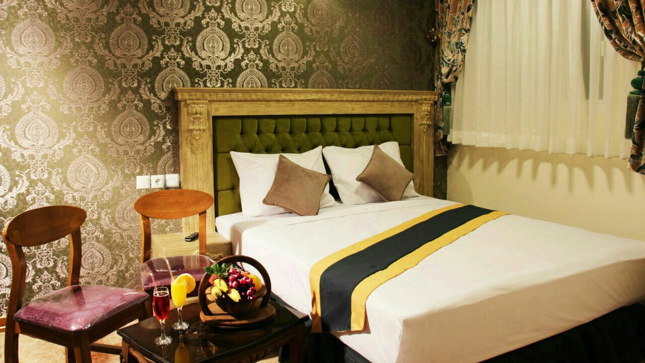 این اتاق با یک تخت بزرگ با طراحی و چیدمان مناسب و زیبا برای زوجین بسیار مناسب است و همیشه هتل پذیرای زوجین جوانی است که برای ماه عسل به مشهد سفر می کنند تا هم زیارت کنند و هم از امکانات تفریحی شهر مشهد استفاده کنند و از سفر خود لذت ببرند. این اتاق با تخت، پتو و ملحفه های زیبا، قالی خوش رنگ، مبلمان شیک، پنجره های بزرگ مشرف به خیابان با پرده های مناسب، حمام اختصاصی، حوله حمام، دمپایی حمام، دستمال سرویس بهداشتی ایرانی، سرویس بهداشتی فرنگی، صابون، شامپو، خمیر دندان، مسواک، یخچال، آب معدنی رایگان، کمد لباس، رخت آویز، دراور، آباژور، آینه، میز آرایش، دم پایی مخصوص اتاق، روم سرویس، تلفن، تلویزیون، اینترنت رایگان و پرسرعت، سیستم اعلام حریق در اتاق، سیستم اطفاء حریق در اتاق، امکان شارژ وسایل الکترونیکی در اتاق، سیستم سرمایشی اسپلیت و سیستم گرمایشی مرکزی، صبحانه، ناهار و شام رایگان با منو انتخابی در نظر گرفته شده است تا مهمانان این اتاق هیچ دغدغه ای را در طول سفر تجربه نکنند و فقط لذت ببرند.