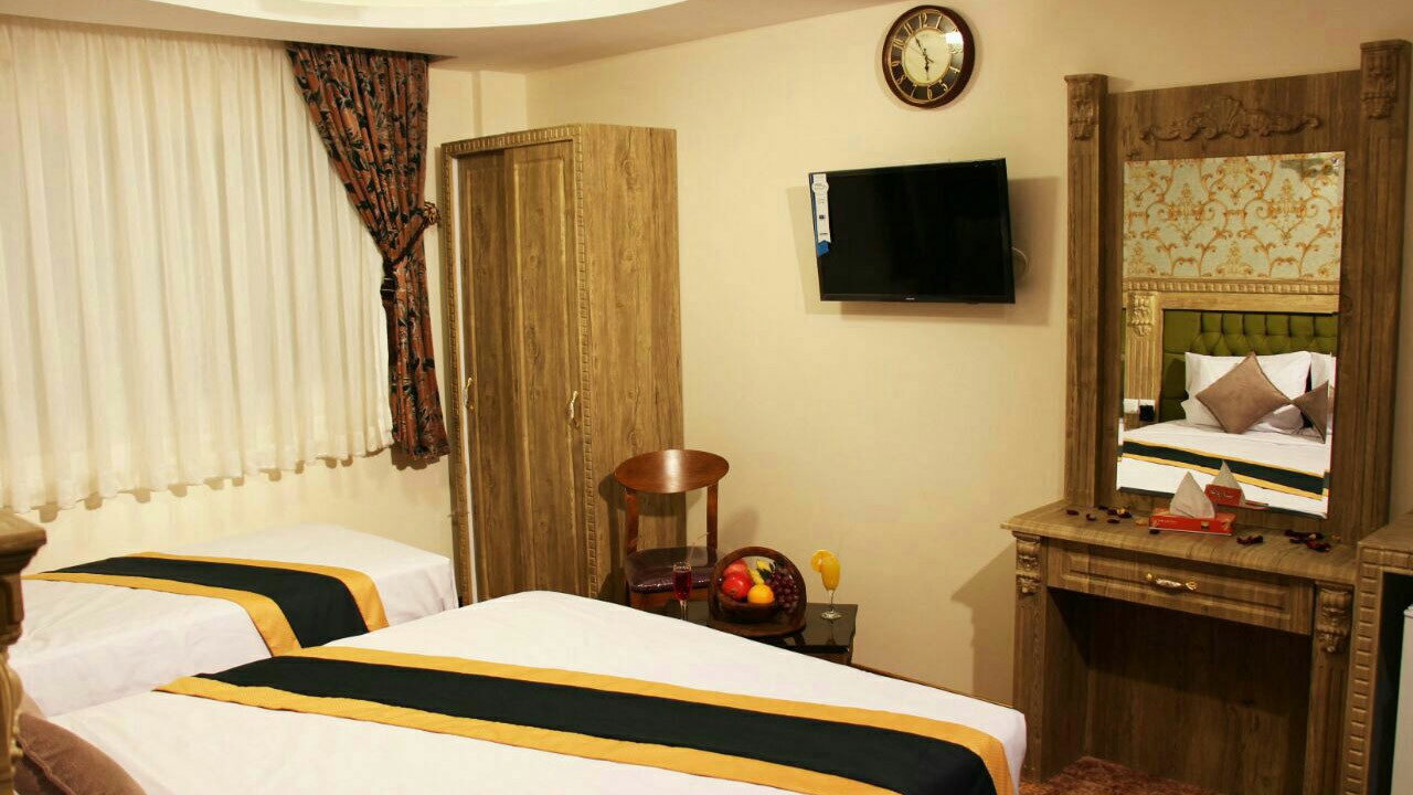اتاق تویین فولبرد هتل آبشار مشهد برای افرادی که با دوست و همکار برای یک سفر زیارتی و تفریحی آمده اند مناسب است و می توانند در هر ساعت از شبانه روز که اراده کنند با 5 دقیقه پیاده روی به زیارت بروند. اتاق دارای دو تخت سینگل با پتو و ملحفه های تمیز، قالی زیبا، پنجره های نور گیر با پرده های مناسب و مبلمان شیک چیده شده است تا با همسفر خود استراحت خوبی داشته باشید.