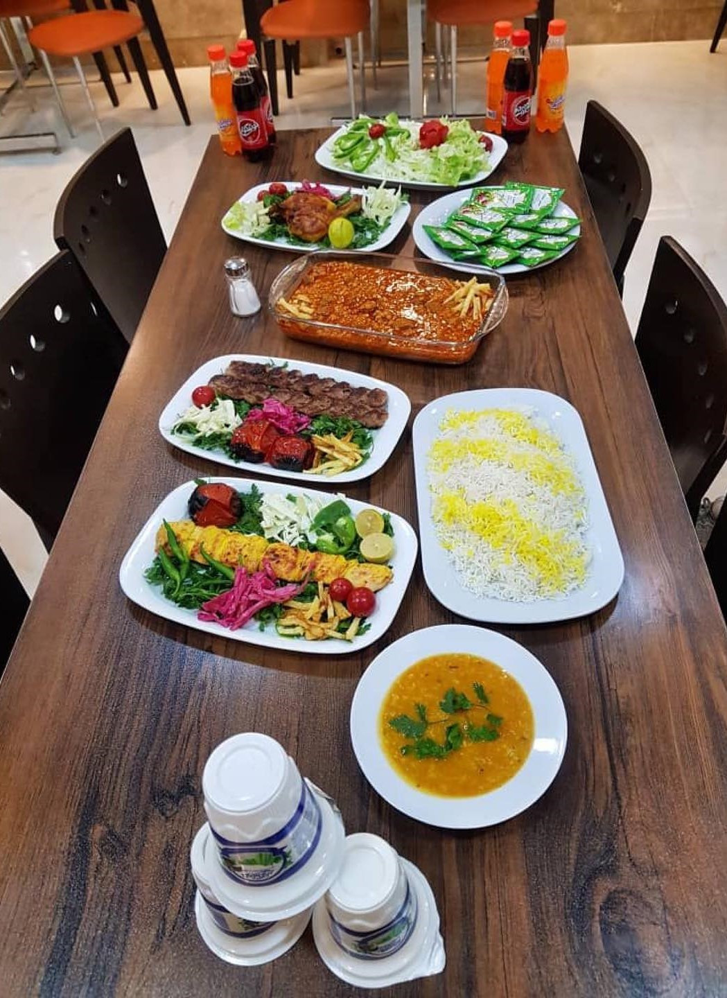 بسیاری از مسافران شهر مشهد برای نوش جان کردن یک وعده غذای لذیذ و سالم در این شهر معمولا به دنبال رستوران هستند، رستوران هتل دایان مشهد فضا ایدهآلی برای صرف غذا است. در منوی این رستوران انواع غذاهای کبابی، خورشتی، غذاهای محلی و حتی فست فودها نیز به چشم میخورد، مواد اولیه در این رستوران به صورت روزانه تهیه و غذاها توسط بهترین سرآشپزها طبخ میشود. طراحی داخلی رستوران هتل به سبک مدرن است و از میزهای مستطیل با رومیزی شفاف و صندلیهای فلزی برای این فضا استفاده کردهاند، نورپردازی حرفهای این رستوران باعث شده مسافران در محیطی دلچسب غذای مورد علاقه خود را نوش جان کنند. مواد اولیه در این رستوران به صورت روزانه و با بهترین کیفیت تهیه میشود، فضای شیک رستوران هتل دایان بهترین گزینه برای نوش جان کردن غذایی خوش طعم در شهر مشهد است. وعده صبحانه همه روزه از ساعت 7:30 الی 10:30 صبح برای میهمانان هتل به صورت بوفه باز سرو میشود. رستوران این برای وعده ناهار و شام هم از مسافران پذیرایی میکند.