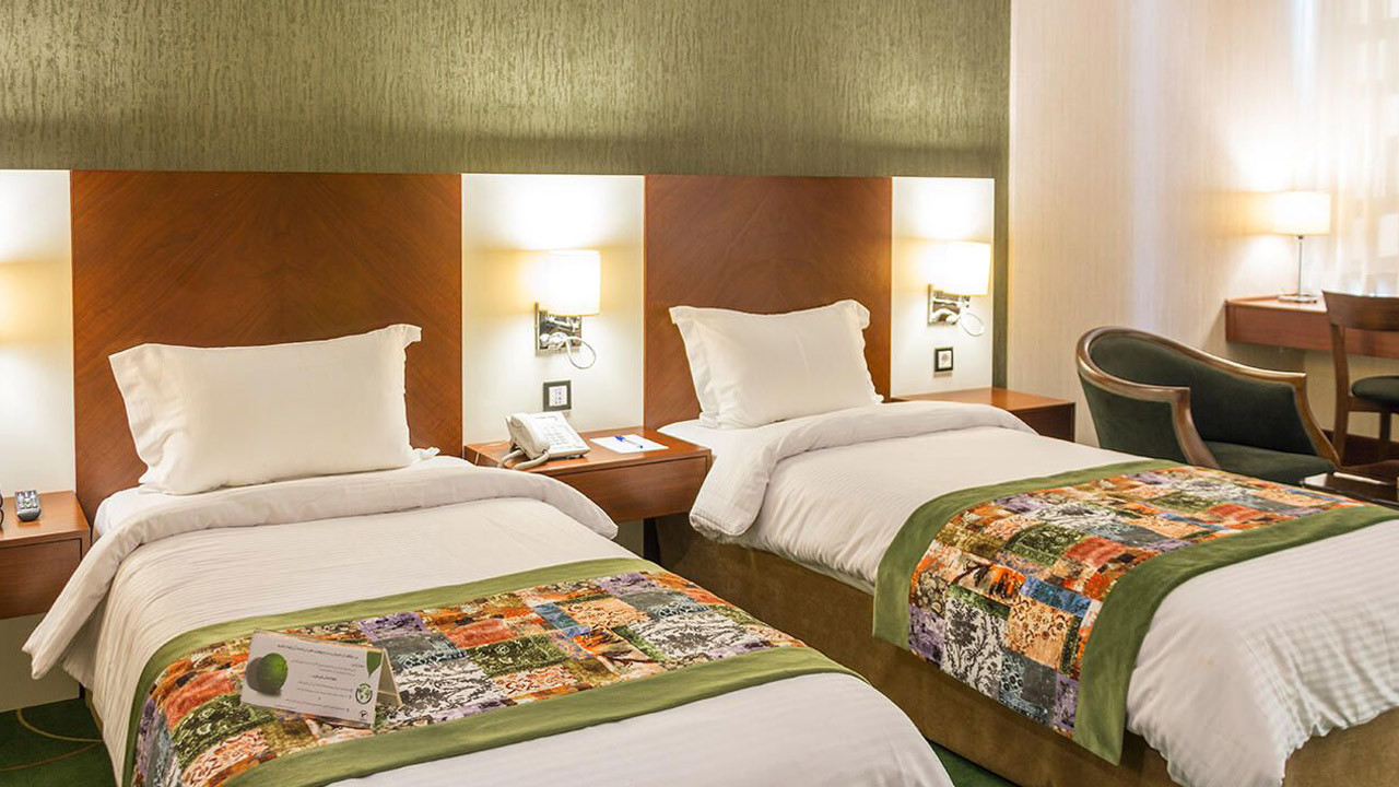 اگر در سفر به مشهد دو نفر هستید پیشنهاد سفربازی به شما انتخاب اتاق دو تخته تویین هتل هماست که همراه با صبحانه ارائه میشود. امکان افزایش نفر اضافه هم دارد.