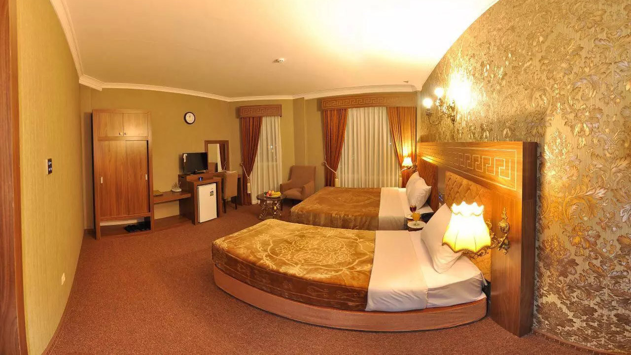 اتاق های سه تخته این هتل یک فضای ایدهآل برای اقامت شما به همراه همسر و فرزندتان دارد، برخی از این اتاق ها مشرف به حرم است و چشم انداز بسیار جذابی دارد. شما می توانید در طول مدت اقامت خود برای صرف صبحانه از بوفه هتل به صورت رایگان استفاده نمایید.
