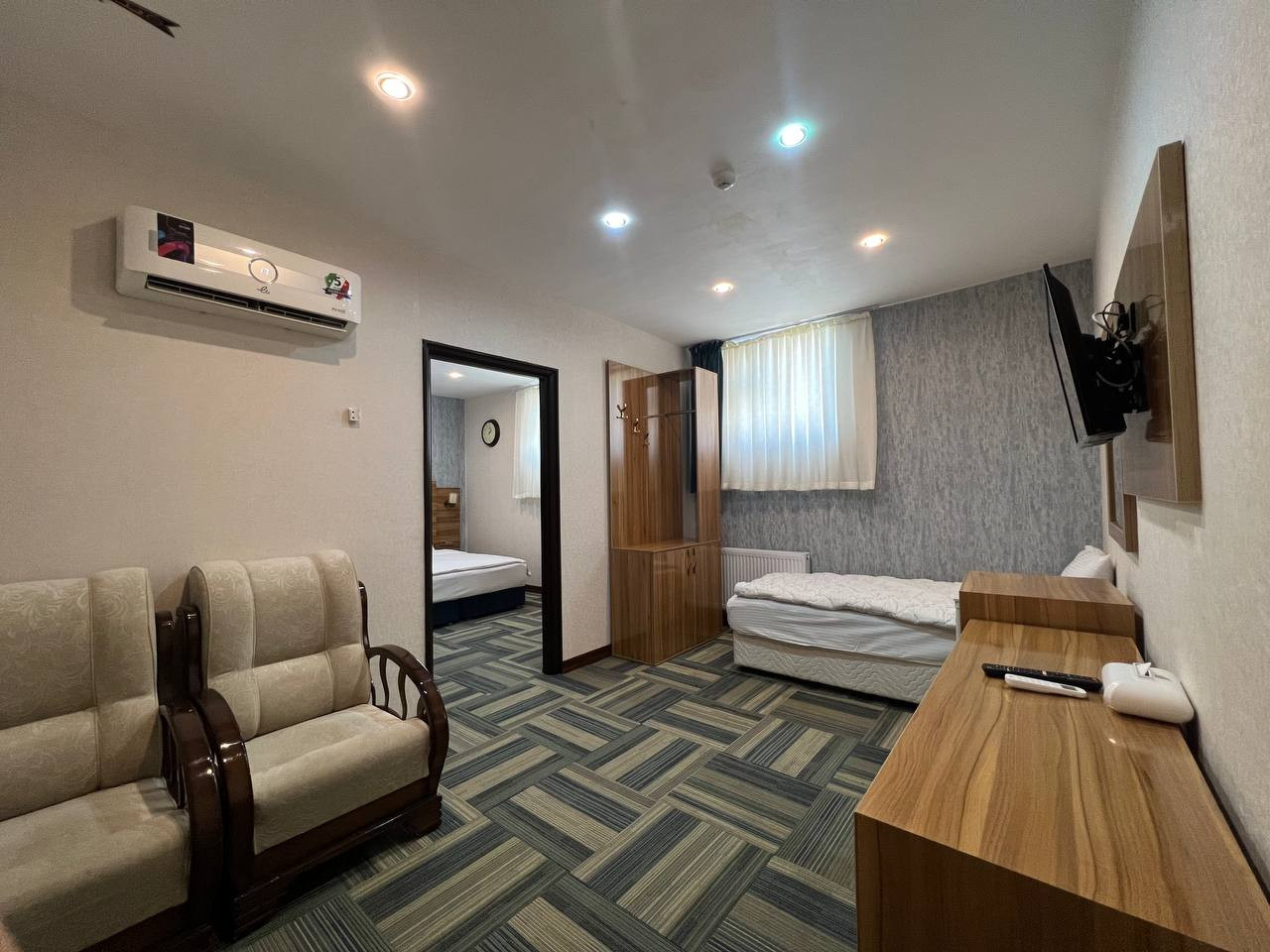 اگر تصمیم دارید با سه نفر از اعضای خانواده و یا دوستان خود به قم زیبا سفر کنید و اقامتی عالی را در این شهر تجربه کنید، پیشنهاد می کنیم که اتاق سه تخته خانوادگی هتل قصر نادری را رزرو کنید با رزرو این اتاق، چشم انداز خوبی رو به فضای شهری و سرسبز اطراف هتل خواهید داشت. این اتاق دارای یک عدد تخت دو نفره و یک عدد تخت تک نفره است. جهت خنک نگه داشتن غذاهایتان در واحد مهیا شده است. از تنقلات موجود در مینی بار هم می توانید با پرداخت هزینه میل کنید.