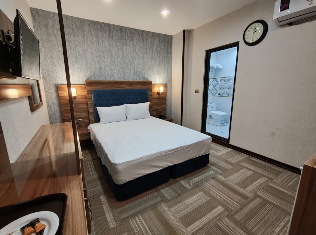 اگر در سفر به قم دو نفر هستید و می خواهید در هتل قصر نادری اقامتی بی دغدغه داشته باشید، می توانید اتاق دو تخته دابل این هتل را رزرو کنید. این اتاق 15 متری دارای چشم انداز رویایی رو به فضای شهری اطراف هتل داشته باشید. در این اتاق دو تخته دابل، یک تخت دو نفره موجود است. این واحد ظرفیت یک نفر اضافه را ندارد. برای سرمایش اتاق اسپیلت و برای گرمایش آن شوفاژ موجود است.