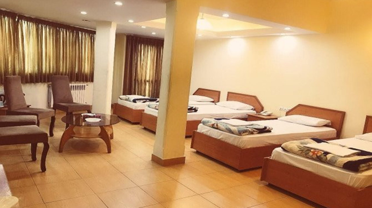 این اتاق برای سفرهای گروهی مناسب است و همیشه طرفداران زیادی دارد. تختهای راحت با پتو و ملحفههای تمیز، پنجرههای بزرگ و نورگیر با پردههای مناسب، قالی زیبا، مبلمان ساده و راحت از امکاناتی است که استراحتی کامل و عالی به شما میبخشد.