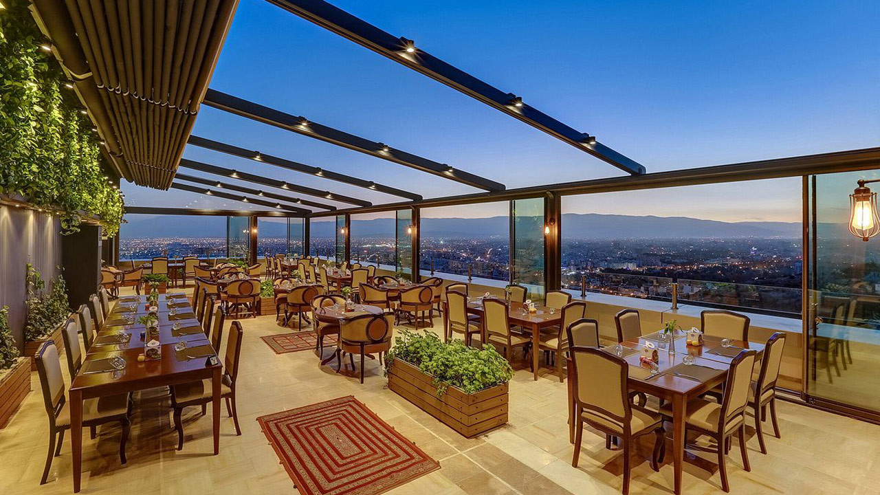 محیط رستوران دارای یک تراس بسیار زیباست که چشم اندازه فوق العاده ای نسبت به شهر شیراز دارد و در کنار این چشم انداز زیبا می توانید یک فنجان قهوه اعلاء هم بنوشید و هیچگاه خاطره اقامت در هتل بزرگ شیراز را فراموش نکنید.