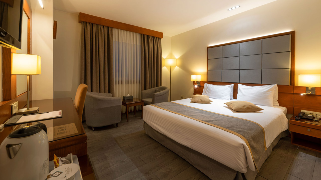 هتل اليزه شيراز 6 مدل مختلف اتاق دارد که هیچ کدام از اتاق ها و سوئیت های آن امکان اضافه کردن سرویس برای نفر اضافه را ندارند و به همین دلیل باید براساس تعداد همسفران خود نسبت به رزرو اتاق و سوئیت اقدام نمایید. سرویس صبحانه، سرویس چای، آب معدنی و اینترنت به صورت رایگان در اختیار همه مسافران اتاق های مختلف این هتل چهار ستاره قرار می گیرد، برای مهمانان هتل که عضو کلوپ مهمانان وفادار الیزه می باشند، خدمات رایگان دیگری نیز در نظر گرفته شده است. طعم نان داغ در کنار بوفه مفصل صبحانه این هتل می تواند روز شما را برای گردشگری خاطره انگیز در شهر شیراز بسازد. در ادامه قصد داریم شما را بیشتر با امکانات اتاق ها و سوئیت های هتل الیزه شیراز آشنا کنیم، می توانید برای رزرو اتاق به سایت سفربازی مراجعه کرده و با مقایسه قیمت ها اتاق مورد نظر خود را انتخاب نمایید.