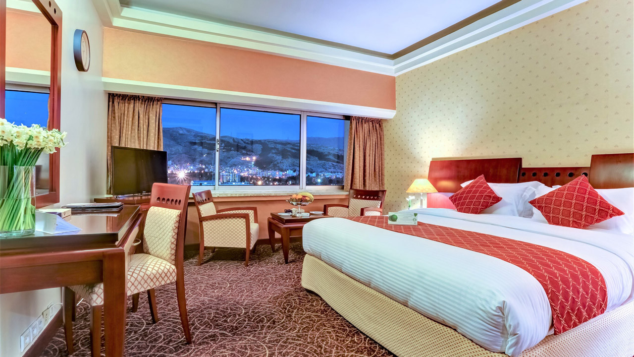 اگر به همراه دوست خود به شهر جذاب شیراز سفر می کنید، می توانید اتاق دو نفره تویین را رزرو کنید؛ زیرا این اتاق دارای دو تخت تک نفره است. اگر هم تعداد شما سه نفر باشد، اصلا نگران نباشید، زیرا امکان اضافه کردن یک تخت دیگر هم به اتاق وجود دارد. این اتاق 35 متری ویو عالی رو به بوستان آزادی و شهر دارد و از تماشای زندگی روزمره مردم و درختان سرسبز بوستان حسابی لذت خواهید برد. از خدمات و امکانات این اتاق می توان به سرویس بهداشتی فرنگی، حمام، مبلمان، تلویزیون و یخچال اشاره کرد. در اتاق دو نفره تویین امکان استفاده از اینترنت رایگان و نامحدود وجود دارد. تخت های این اتاق بسیار تمیز و راحت هستند و برای استراحت کردن شما و عزیزانتان بسیار مناسب خواهند بود. در این اتاق هم مانند اتاق دو نفره دبل صندوق امانات وجود دارد و نیازی نیست در ارتباط با امنیت وسایل ارزشمند خود نگران باشید.