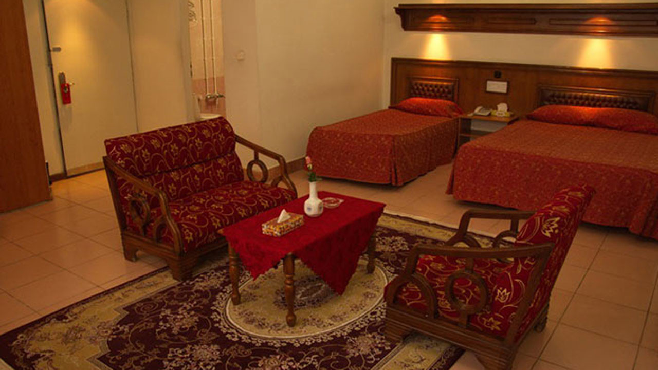 اگر همراه یکی از اعضای خانواده یا دوستانتان به سفر آمده اید و دنبال اقامتگاهی در مرکز شهر با دسترسی عالی می گردید، اتاق دو تخته توئین این هتل مناسب ترین انتخاب برای شما است. این اتاق ها در طبقات اول تا هشتم هتل به صورت پراکنده قرار گرفته اند و شما می توانید با توجه به سلیقه خود و همچنین ظرفیت خالی هتل یک از موارد را انتخاب کنید. این اتاق ها دارای بالکن رو به محوطه سرسبز هتل هستند که شما می توانید از زیبایی منظره آن هم در طول اقامتتان استفاده کنید. این اتاق ها دارای امکانات و خدمات بسیار فراوانی هستند که می توان از آن ها به مواردی همچون سیستم تهویه مطبوع، حمام همراه با پک بهداشتی، سرویس بهداشتی فرنگی، میز و صندلی، یخچال، اسپلیت، قالیچه و غیره اشاره کرد. تمامی این امکانات و خدمات راحتی و آسایش همانند اقامت در خانه را برای مسافران فراهم می آورند. این اتاق ها مختص اقامت دو نفر ساخته شده اند و امکان افزودن سرویس خواب جداگانه در این اتاق ها وجود ندارد.