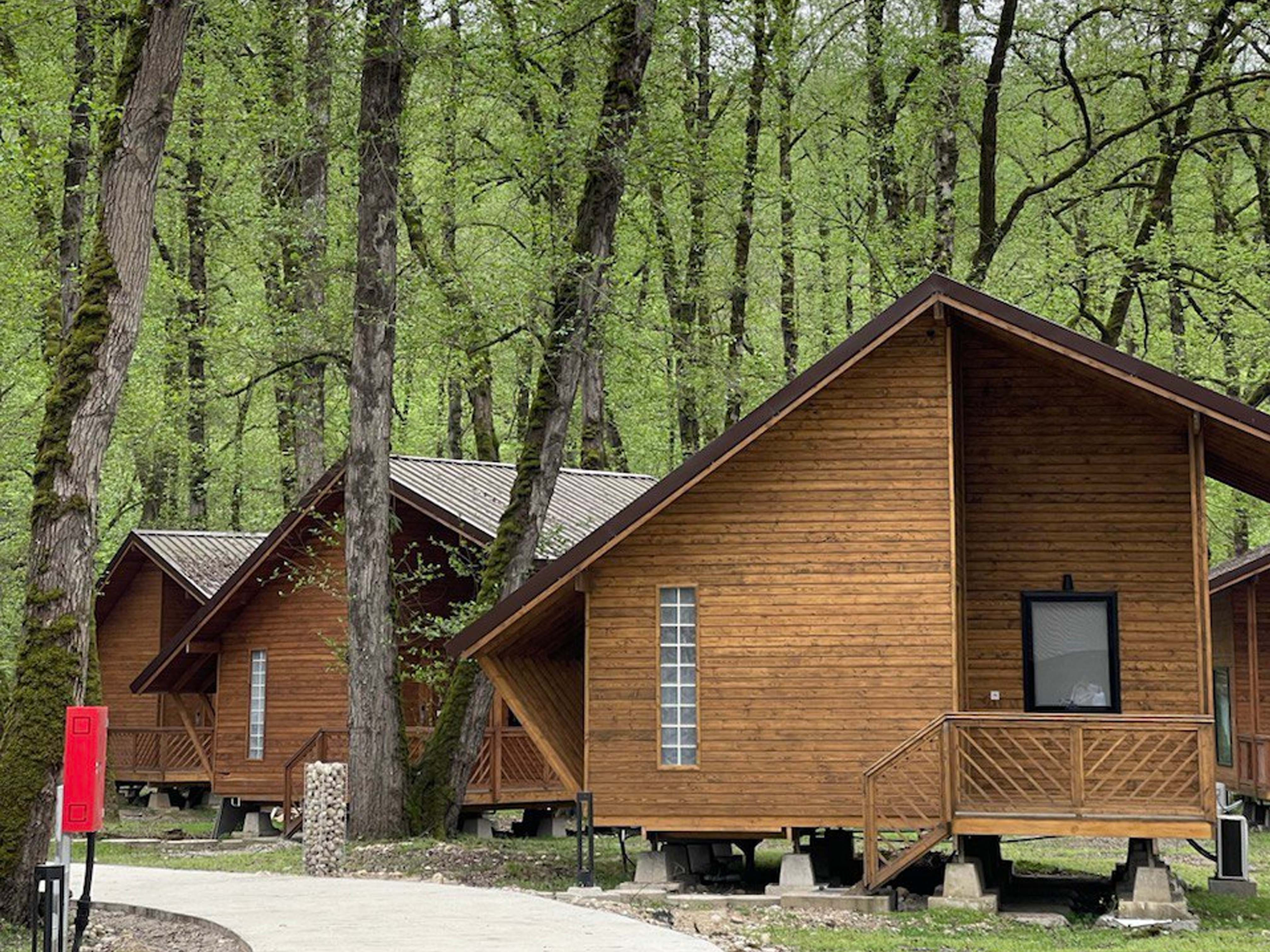 ویلای چوبی دو نفره: این واحدها با طراحی گرم و دلنشین، برای زوجهایی که به دنبال اقامت در فضای دنج جنگلی هستند، مناسب به نظر میرسد.