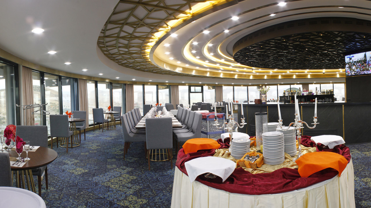 این رستوران گردان که در طبقه هفدهم هتل پارس ائل گلی قرار دارد، چشم انداز بی نظیری به طبیعت اطراف هتل دارد که از تماشای آن شگفت زده خواهید شد. ظرفیت رستوران گردان 130 نفر است و اگر بخواهید مهمانی شام و یا ناهار در آن برپا کنید، یکی از بهترین گزینه ها در هتل ائل گلی خواهد بود. سرویس دهی در این رستوران سریع است و پرسنل آن بسیار خوش برخورد هستند. ساعت کاری رستوران گردان برای سرو ناهار 12:00 الی 15:30 و برای وعده شام از 20:30 الی 23:00 است.