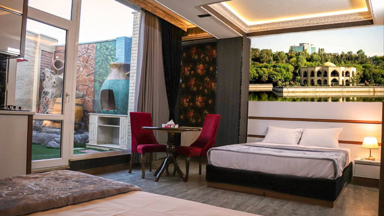 این سوئیت با امکانات و خدمات عالی به زوج های جوان که برای سفرماه عسل تمایل دارند چند روزی را در یک مکان متفاوت با خدمات و امکانات ویژه بگذارانند توصیه می شود. فضایی بزرگ و دلچسب با پنجره های بزرگ و پرده های زیبا، حیاط خلوت با باربیکیو و میز و صندلی، تخت بزرگ کینگ، با پتو و ملحفه های تمیز، مبلمان شیک با طراحی زیبا، حمام اختصاصی با جکوزی و دیگر امکانات مشابه اتاق ها از ویژگی های اتاق برای مهمانان عزیز است تا اقامتی شاد و فراموش نشدنی را در این سوئیت داشته باشند.