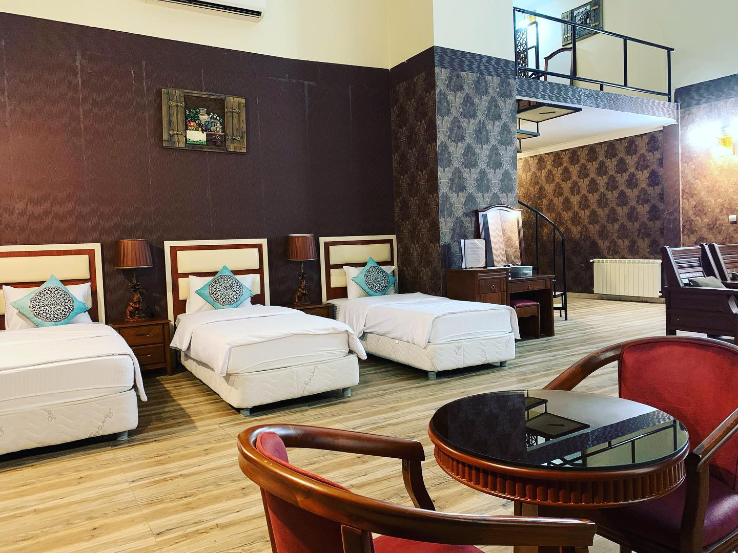 این اتاقها دارای یک تخت دبل و دو تخت تک نفره تویین است. این اتاقها امکان افزایش نفر اضافه ندارد. همچنین وعده صبحانه روی سرو این اتاق قرار دارد. همین اتاق با همین تعداد نفرات و تخت به صورت دوبلکس هم ارائه میشود. از دیگر امکانات اتاق میتوان از حمام، یخچال، دراور، بالکن، صبحانه، مبلمان، آباژور، دمپایی، رخت آویز، کمد لباس، پاور سوئیچ، تلفن، لوازم بهداشتی، اینترنت و تلویزیون، سیستم گرمایش و سرمایش و سرویس بهداشتی ایرانی نام برد.