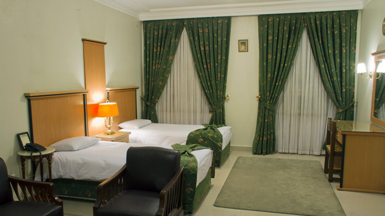 شما با اقامت در این سوئیت می توانید بعد از یک روز شلوغ و پر هیاهو در اتاق از آرامش خوبی برخوردار باشید و استراحت کنید. این سوئیت با امکانات ویژه سعی نموده است وسایل راحتی شما را فراهم سازد. کف اتاق سرامیک می باشد که با فرش پوشیده شده است و مبلمان ساده و راحت - تخت و پتو ملحفه تمیز در اتاق برای یک استراحت خوب مهیا می باشد و شما می توانید از پنجه اتاق که با پرده های زیبا پوشیده شده منظره شهر را تماشا کنید.