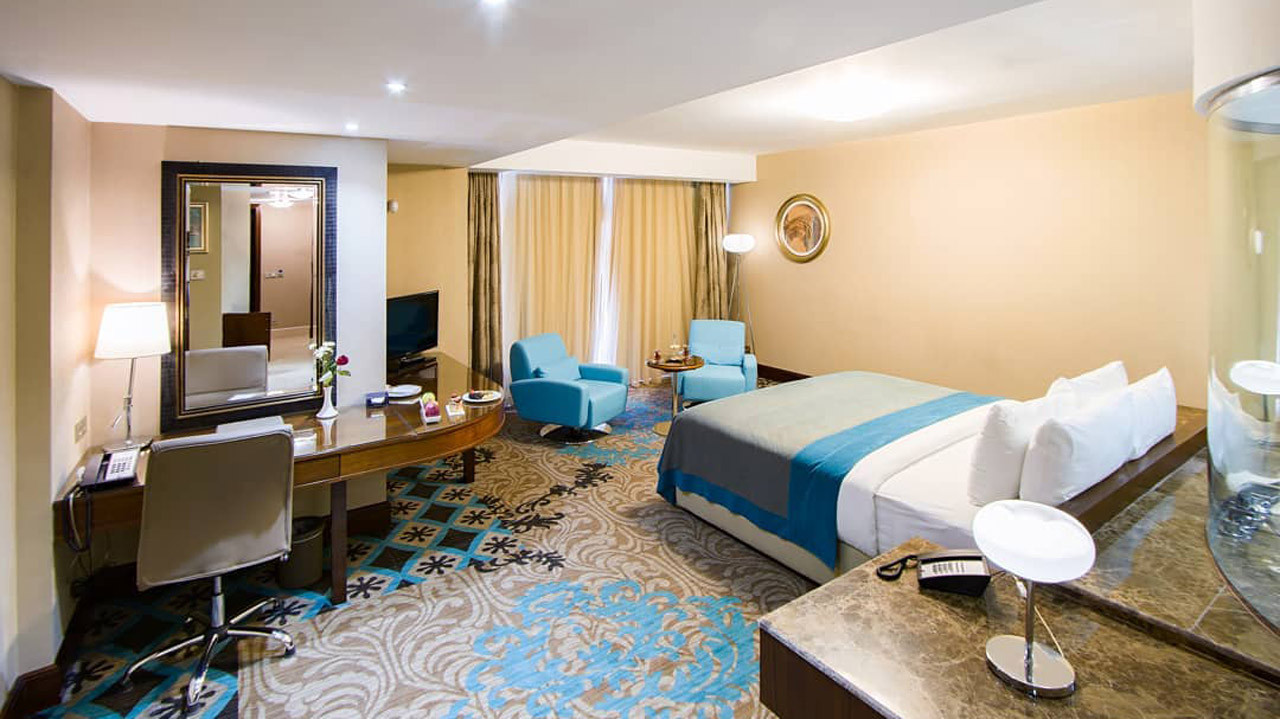 برای اقامت راحت در سفرهای دو نفره کاری و یا خانوادگی به شهر ارومیه میتوانید واحدهای دو تخته استاندارد این هتل پنج ستاره را رزرو نمایید. این واحدها امکانات و متراژی مشابه واحدهای یک تخته استاندارد دارد با این تفاوت که در این اتاقها از دو تخت تک نفره با ابعاد استاندارد استفاده شده و خدمات رفاهی اتاق برای دو نفر بزرگسال تعبیه شده است.
