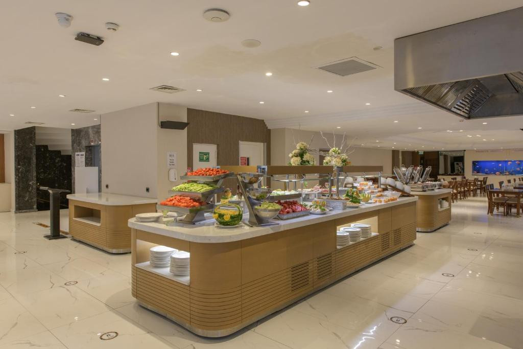 در رستوران این هتل می توانید از انواع غذاهای ترکی، فست فود و فرنگی آن میل کنید و حسابی لذت ببرید. اگر دوست دارید در اوقات فراغت خود آب و هوایی عوض کنید، محوطه سرسبز هتل بهترین مکان برای شما خواهد بود. اگر به دنبال نوشیدنیهای خنک هستید، می توانید سری به بار استخر بزنید و اوقات خوشی را در این مکان سپری کنید.
