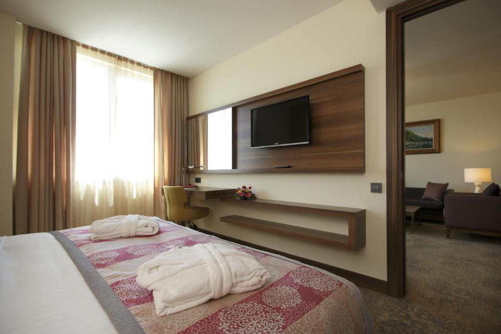 ❇️هتل تویاپ پالاس استانبول - Tuyap Palas- یکی از هتل های ۵ ستاره مجلل و از بزرگترین و معتبرترین هتل های استانبول در منطقه Büyükçekmece است. هتل تویاپ پالاس استانبول یک مکان ایده آل برای کشف استانبول است که در فاصله ۳۹.۵ کیلومتری مرکز شهر واقع شده و مهمانان هتل در مکان خوبی برای لذت بردن از جاذبه های گردشگری شهر از جمله مرکز خرید استانبول، مرکز خرید بیلیسیوم و گنبد سنان اردم واقع شده اند. فاصله هت...