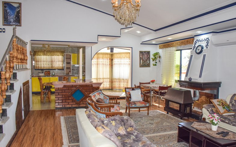پذیرایی و اتاقهای ویلادربستی دوبلکس لاکچری ساحلی